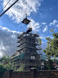 Als erste Maßnahme soll nun das Dach neu eingedeckt, die Turmhaube erneuert und der Außenputz saniert werden – Gesamtkosten über 300.000 Euro. Und eben diese Turmhaube stand am 11. Juli im Mittelpunkt des Interesses – nicht nur für die Einwohner, sondern auch der mediale Rummel an dem Tag war beachtlich: Kamerateams hatten sich rund um die Kirche positioniert; Drohnen waren in Startposition; Thorsten Keßler von Radio SAW machte sein Aufnahmegerät bereit und auch die versammelte Lokalpresse harrte gespannt der Dinge, die da kommen sollten.
